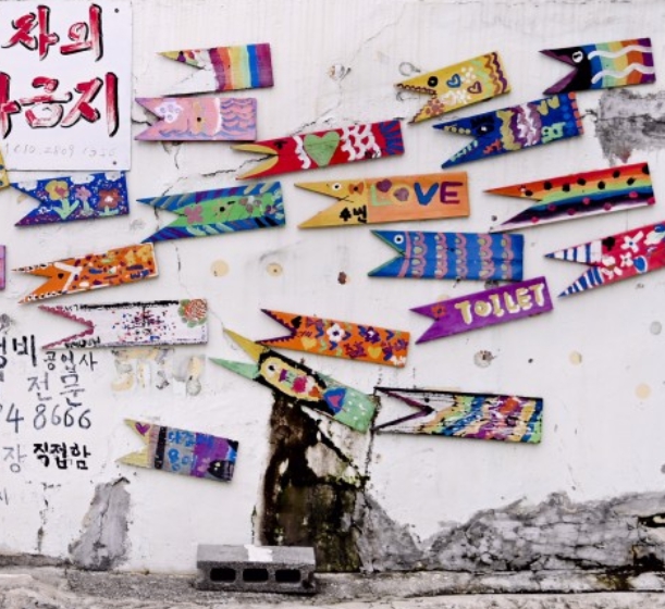 - 감천문화마을 – 알록달록한 벽화와 아기자기한 골목길 (연중 무휴이며 무료 인곳)